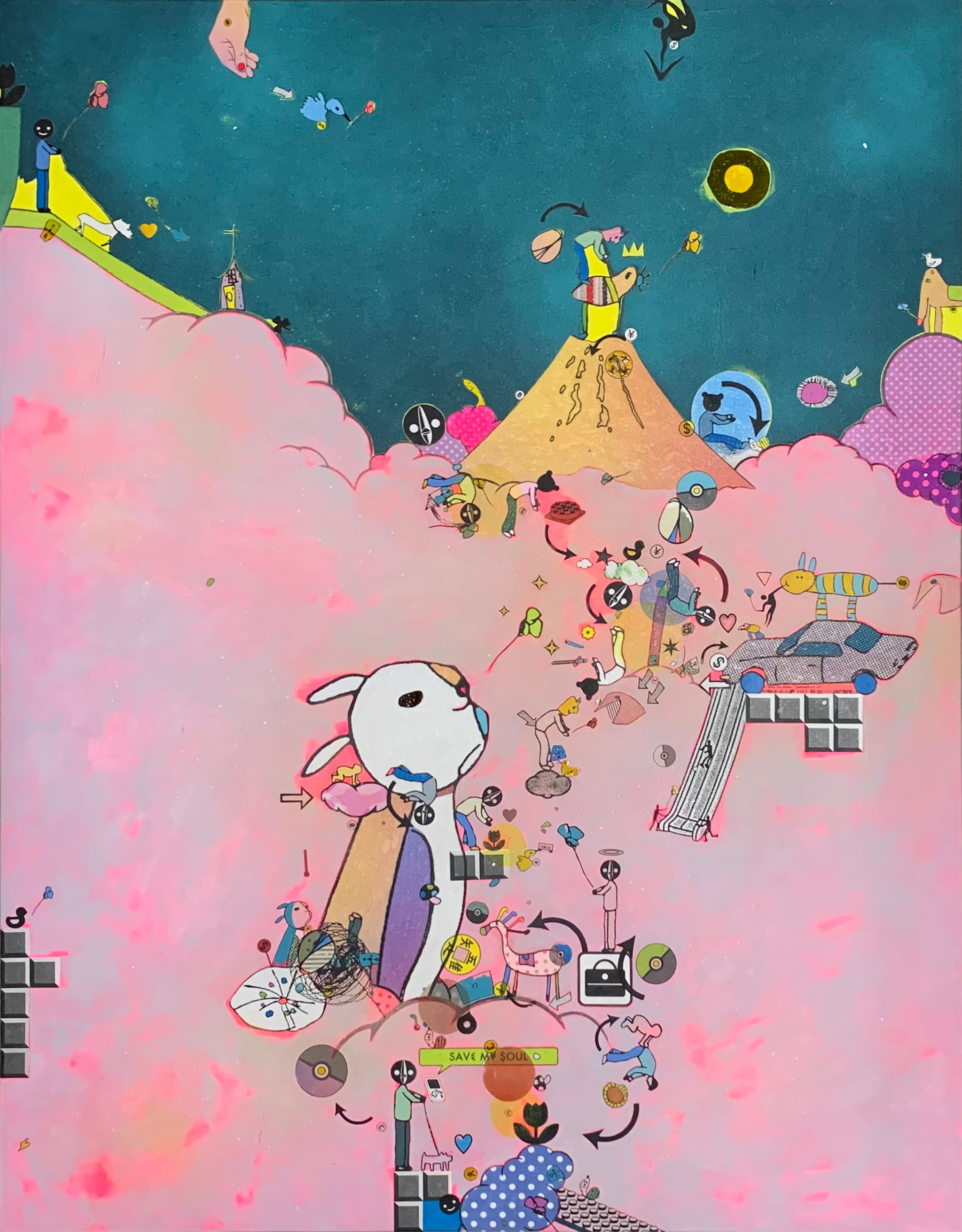 キャンバス・アクリル・コラージュ・レジン Acrylic on canvas, collage, resin 116.7×91cm 2025年 # CURATION⇄FAIR Kyoto 2025 出品