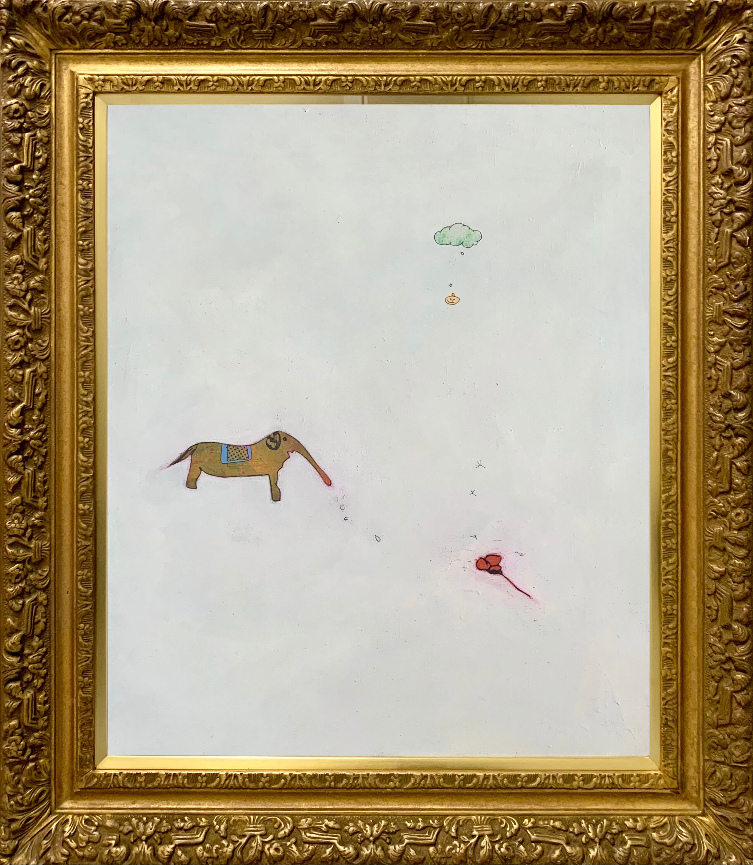 キャンバス・アクリル・コラージュ・金箔 Acrylic on canvas, collage, gold leaf 72.7×60.6cm 2020年 #額装|Framed