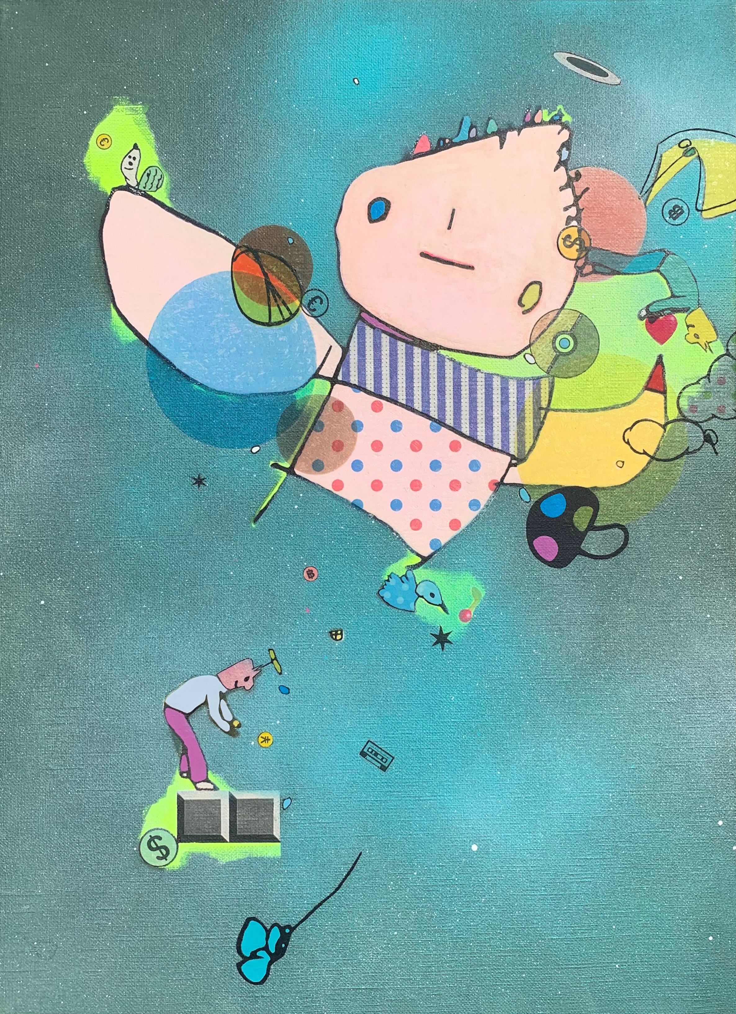 キャンバス・アクリル・コラージュ・金粉 Acrylic on canvas, collage 45.5×33.3cm 2023年