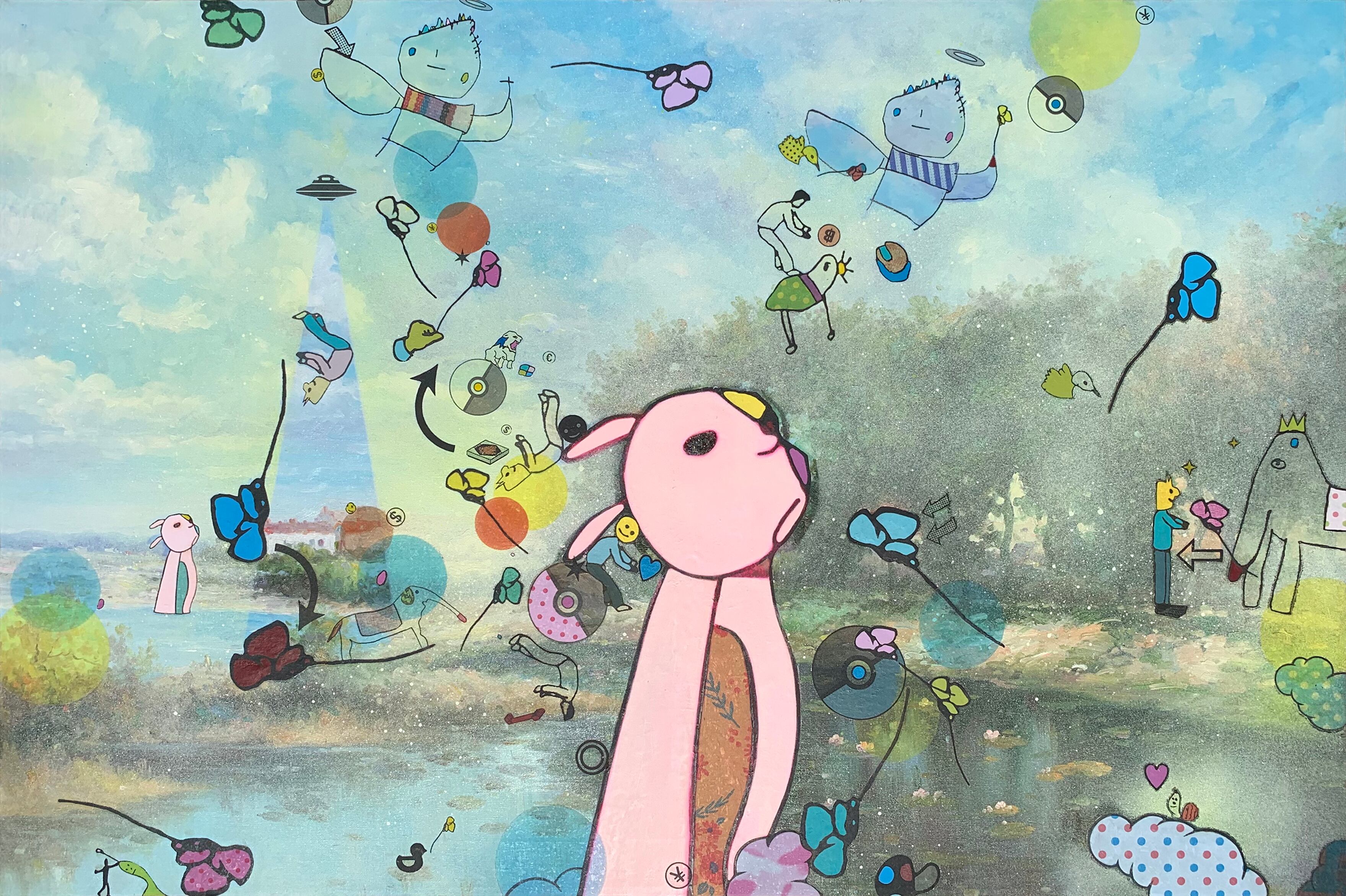 キャンバス・アクリル・コラージュ・金粉 Acrylic on canvas, collage, gold dust 60.6×91cm(90×120cm) 2023年 #アーティスト額装|Framed ※アートフェア「ART FAIR ASIA FUKUOKA 2023」出品
