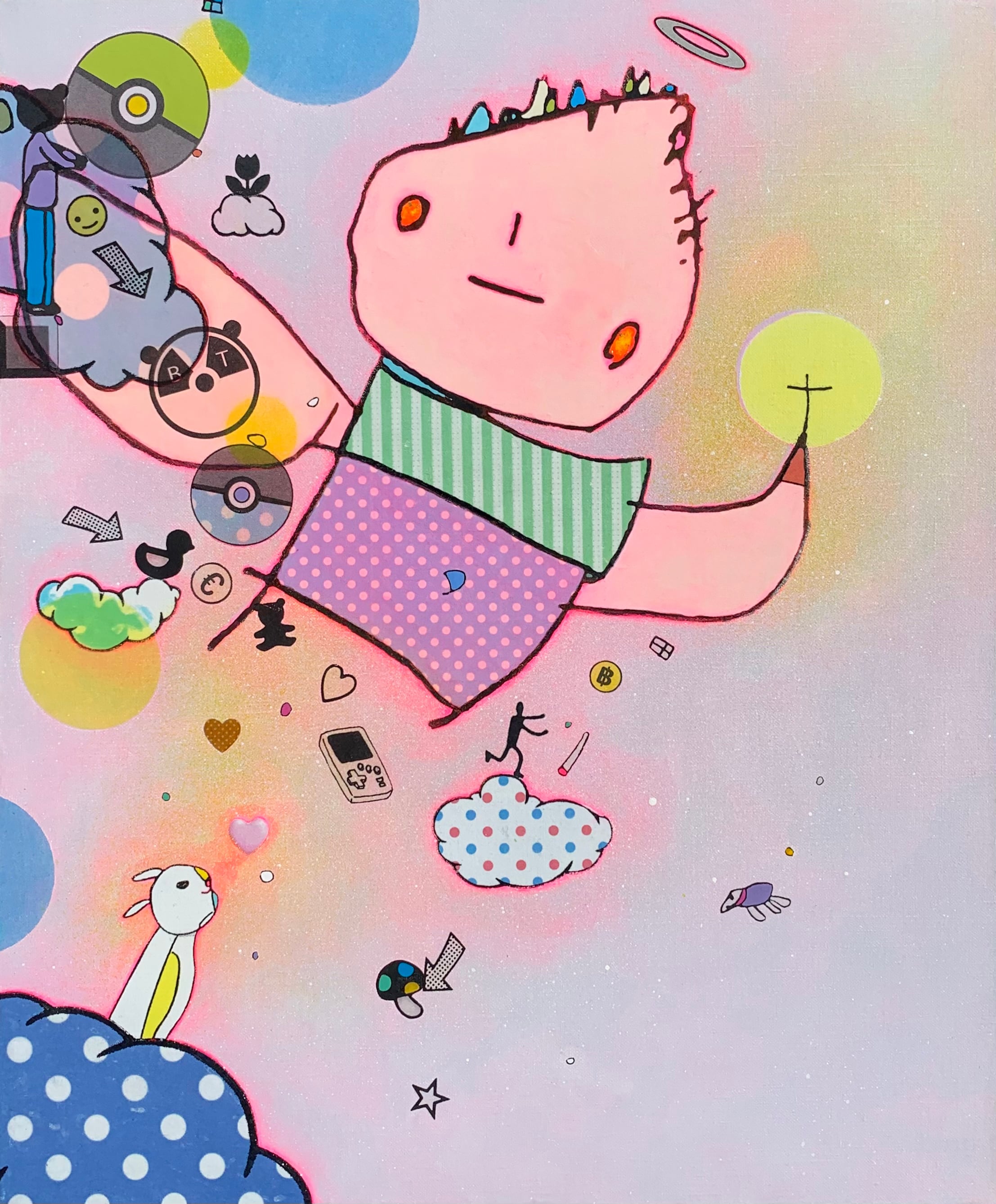 キャンバス・アクリル・コラージュ・金粉 Acrylic on canvas, collage, gold dust, resin 45.5×38cm 2024-2025年