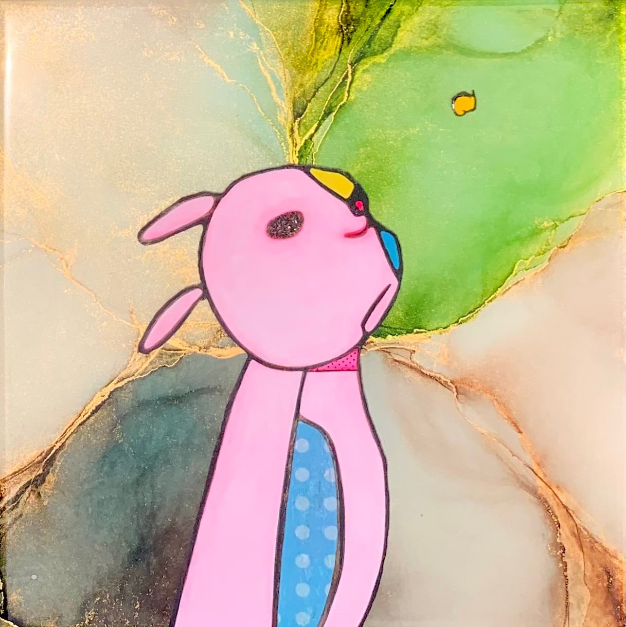 キャンバス・アクリル・コラージュ・金粉・レジン Acrylic on canvas, collage, gold dust, resin 22.5×22.5cm 2024年 # artKYOTO 2024 出品