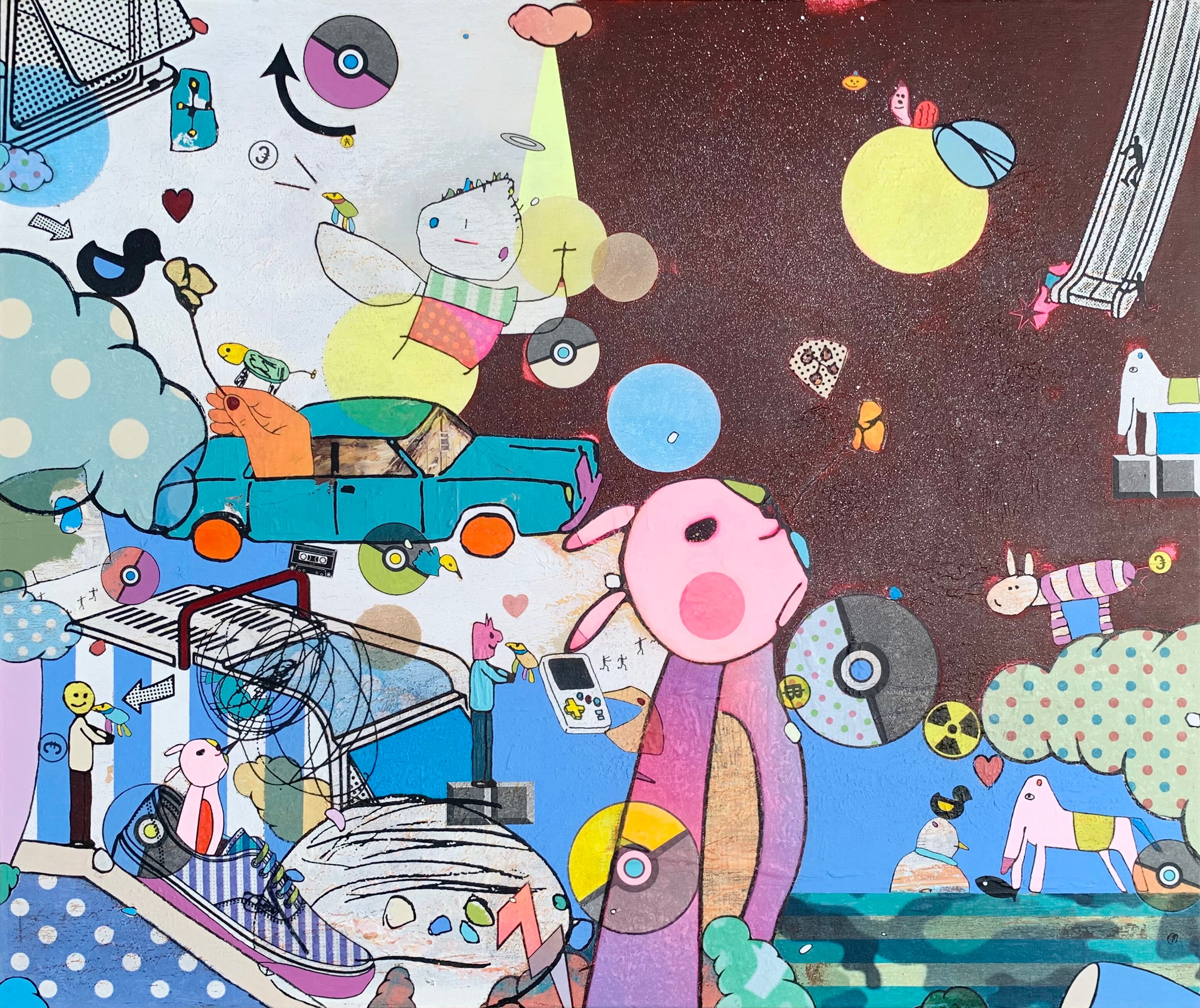 キャンバス・アクリル・コラージュ・金粉 Acrylic on canvas, collage, gold dust 53.2×63cm 2024年 # TACHIKAWA ART SHOW 2024 出品